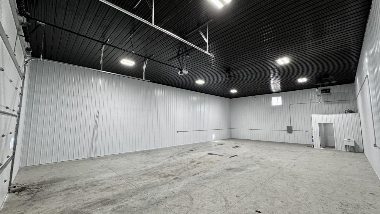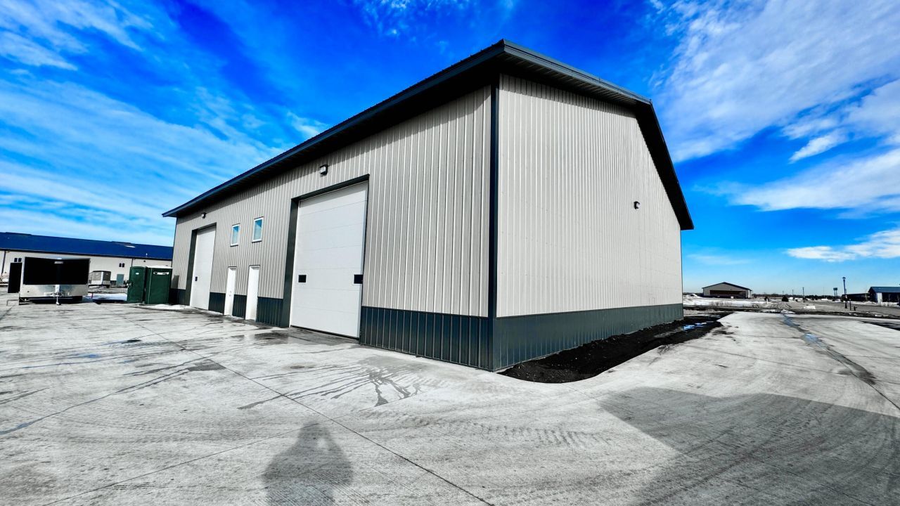 South Unit 40'x65' shop condo with 2,600 sq ft, fully finished, insulated, and steel lined. Heated with LED lights, ceiling fan, garage door opener, floor drain, bathroom, utility sink, outlets, and 200-amp panel. Upgrades like A/C, mezzanine, kitchen, and more available. Concrete driveway and parking from road to door with outdoor parking allowed. Easy access near I-29 & 100th Ave S.