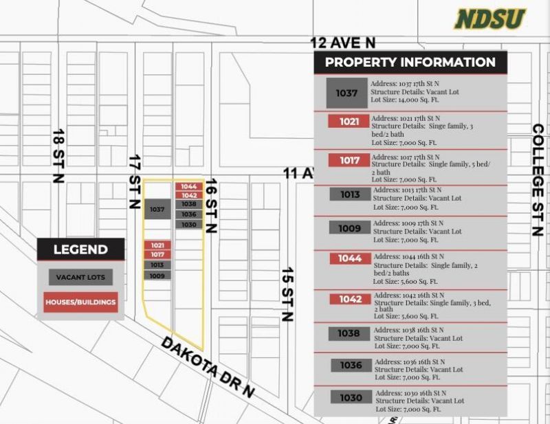 Exceptional Development Opportunity - 10-Parcel Investment Package! Prime Location in North Fargo Unlock the potential of North Fargo with this rare opportunity to acquire 10 contiguous properties, offering a mix of single-family homes and vacant lots--ideal for residential redevelopment, investment, or a mixed-use vision. Included Properties: 1030 16th St N - Vacant Lot