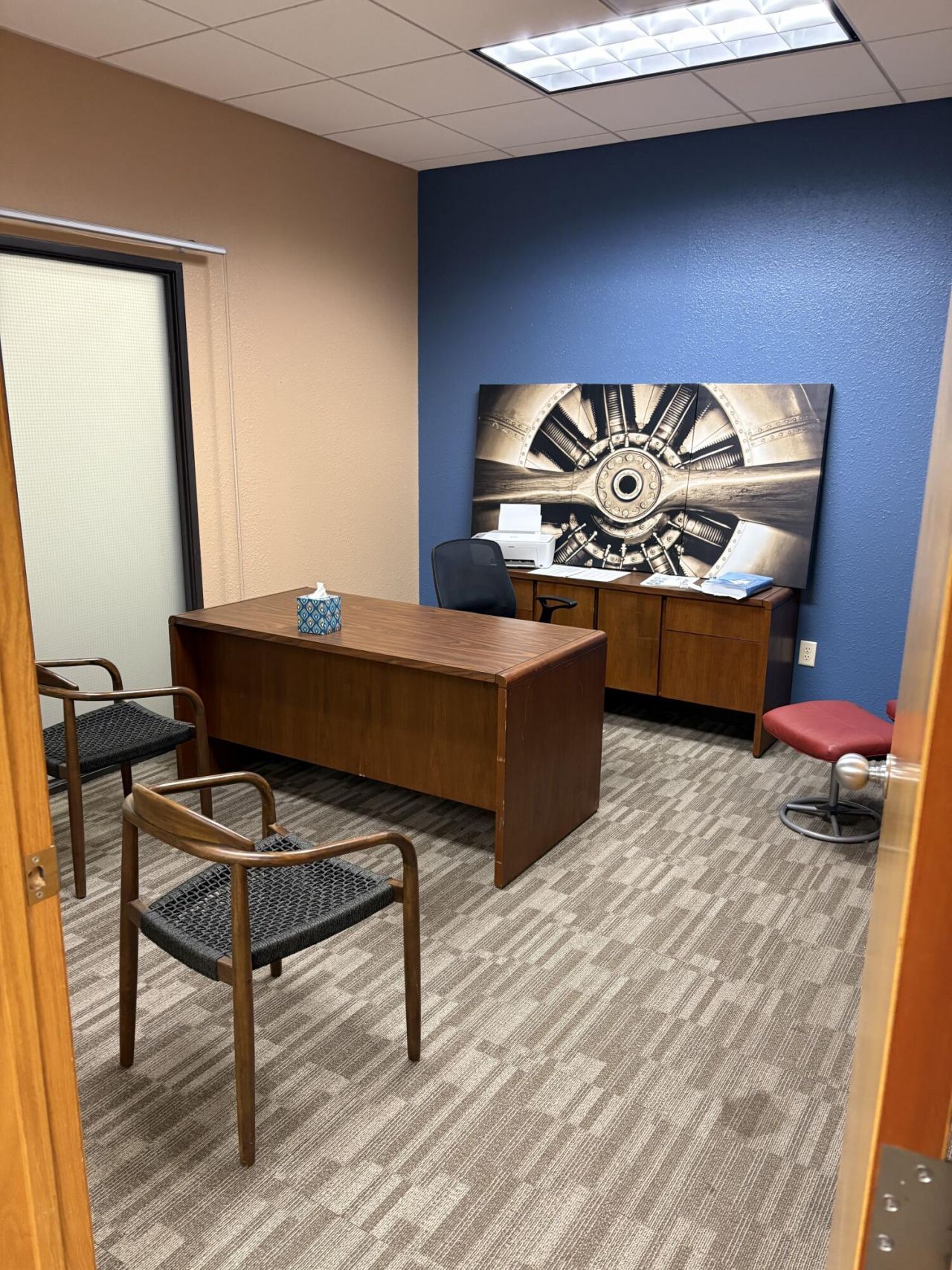 Prime downtown Fargo location. Parking available and included at no charge. No CAM! Elevator served. Blazing fast internet service, up to 1 Gig, already in the building from multiple vendors. 4 private offices, reception, kitchenette and break area. Available January 1, 2026.