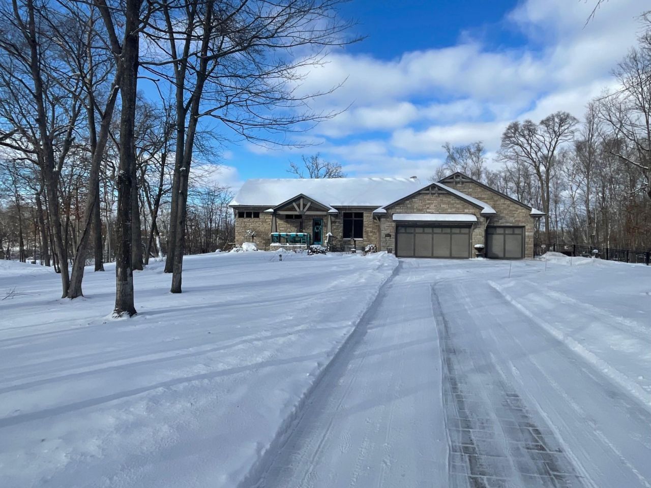 Enjoy the Peace and Serenity of this absolutely gorgeous walkout rambler on five private, wooded acres with wetland views. A home built to a standard that simply cannot be replicated at today's construction costs.This turnkey walkout rambler delivers the kind of craftsmanship and finish detail that stops you the moment you walk through the door. Soaring 12-foot ceilings set the tone for an open, airy main level anchored by a stunning great room with custom built-ins, a gas fireplace, and panoramic views of the surrounding wetlands. Eight-foot cherry doors and hand-crafted millwork flow throughout, lending the home a warmth and intentionality...read more