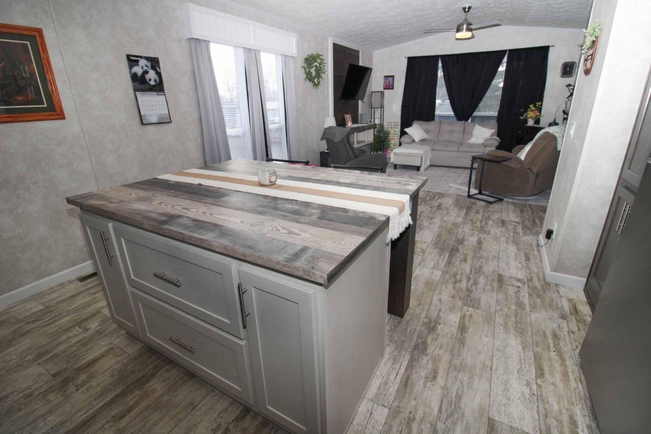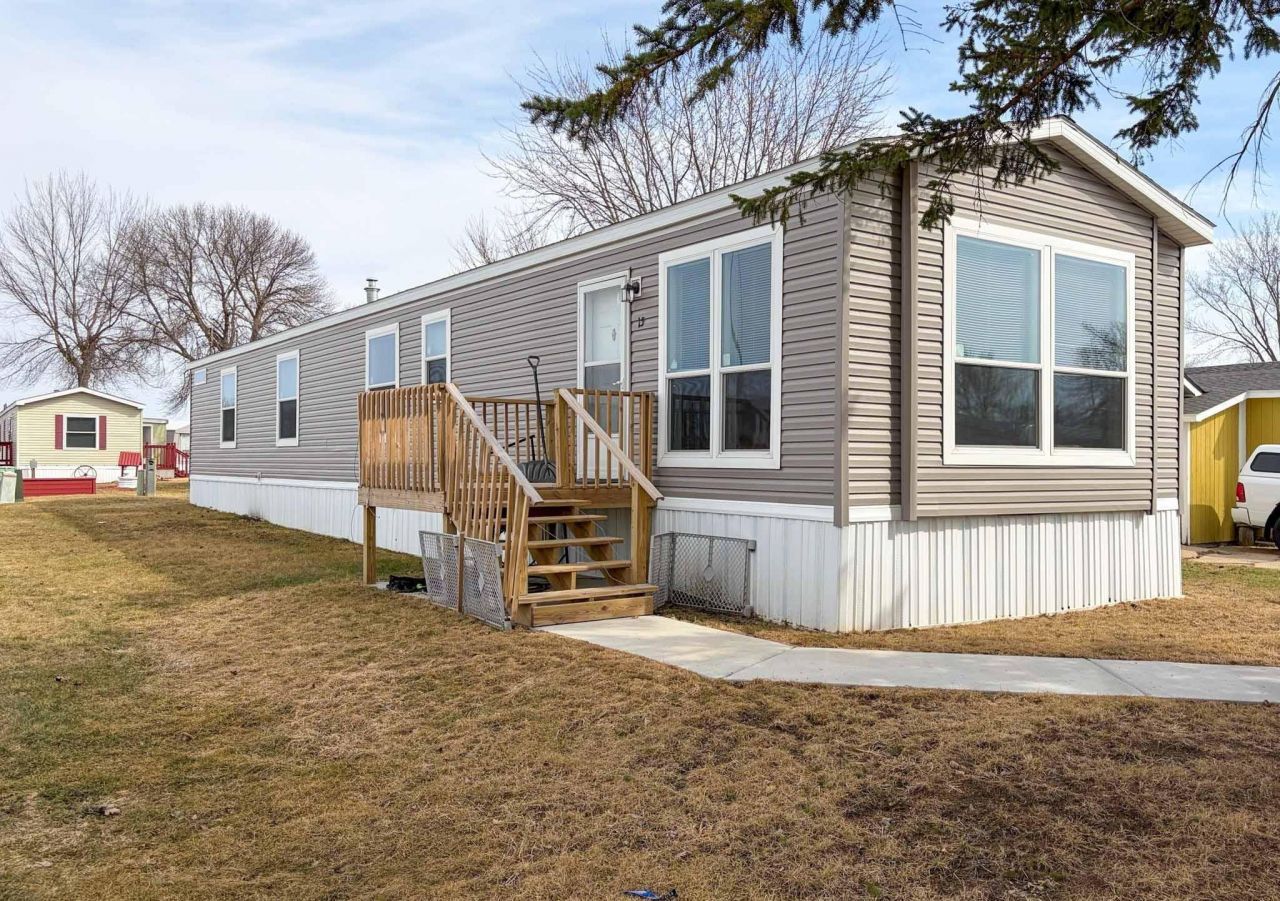 Affordable housing option, located in a well-maintained mobile home park! Mobile home is a 2023 model w/popular amenities & modern colors & finishes. Rental is $280/month & includes a detached oversized 1-stall garage. You'll appreciate the kitchen's large center island w/butcher block countertop, beautifully stained cabinets, SS appliances, tiled backsplash & laminate planking flooring. Open concept kitchen/dining/living rooms; plenty of natural light! Relax in the spacious primary bedroom suite; you will love the WIC, stand up shower and deep soaker tub. Steps away is a laundry area! Second and third bedrooms are nice-sized and are next...read more