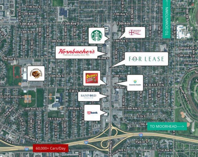 Southside Center is a neighborhood retail strip center located on University Drive between 13th Avenue and I94. Shared signalized intersection with Hornbacher's grocery store. The neighborhood is a mix of single-family residential, new multifamily, and office space including Sanford's University clinic. The area has seen recent redevelopment such as a new Starbucks within 0.2 miles away!