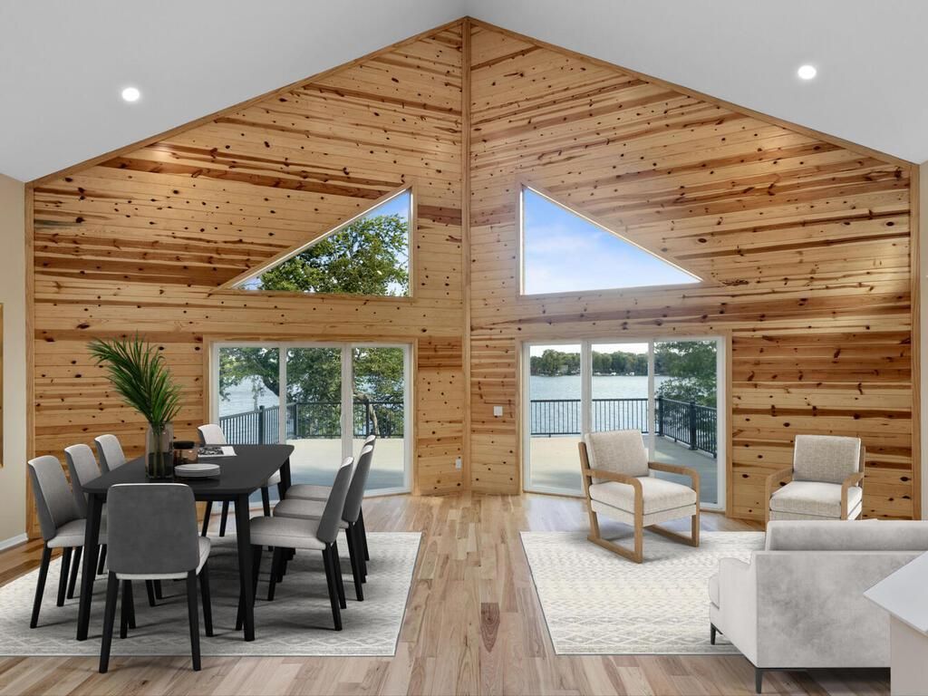 Experience luxury living at its finest with this new construction home on the pristine shores of Spring Lake. Offering nearly 5,000 sq. ft. of expansive living space, this home features 2 bedrooms on the main floor, including the luxurious primary suite, plus 2 additional bedrooms on the upper level. The open-concept main floor boasts vaulted ceilings, wood accents, and a floor-to-ceiling stone fireplace, creating a warm and inviting atmosphere. The spacious kitchen with a large center island flows into the great room and out to a large Trex deck, offering sweeping lake views. Upstairs, you'll find a loft area perfect for gaming or study....read more