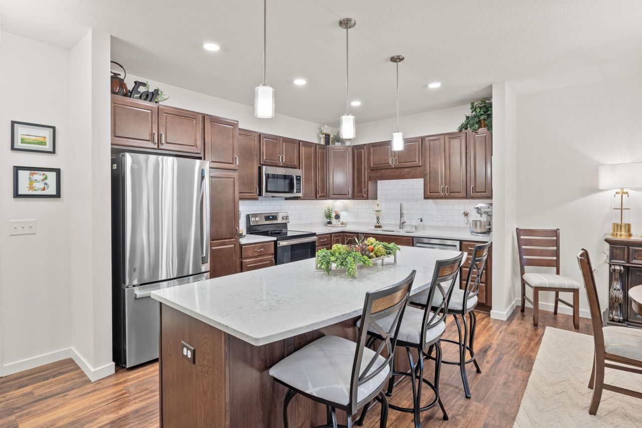 Step into this beautiful 1+ bedroom, 2 bath plus den condo in an exclusive co-op community overlooking Long Lake. The open kitchen features a center island, quartz countertops, stainless steel appliances and tile backsplash. The private primary suite offers a serene retreat, custom walk-in closet and a beautifully appointed private Âľ bath. A versatile den provides the perfect flex space for a home office, library, or guest area. Relax on the screened balcony with composite decking and the unit includes underground heated parking and a dedicated storage space for added convenience. Residents enjoy an exceptional suite of amenities curated...read more