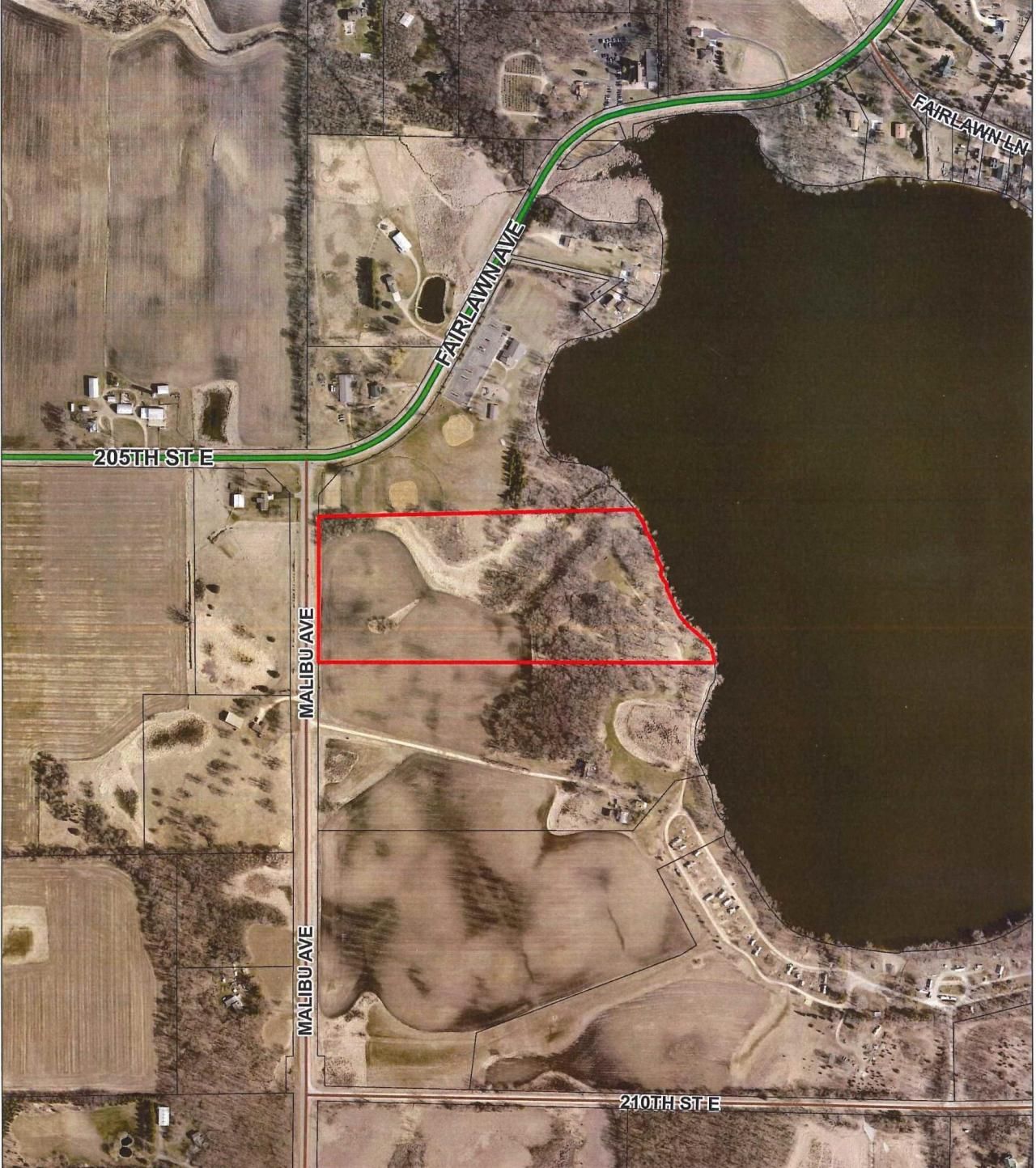 21.4 Acres on Fish Lake, 726' of excellent shoreline, nice rolling land with mature oak & maple woods, wonderful spots for your executive lake front estate, more than one building right may work here, call for maps & details. Ask about possible terms available. Easy access to Hwy 35W and the metro area. Very great opportunity for the right owner!! More land available.