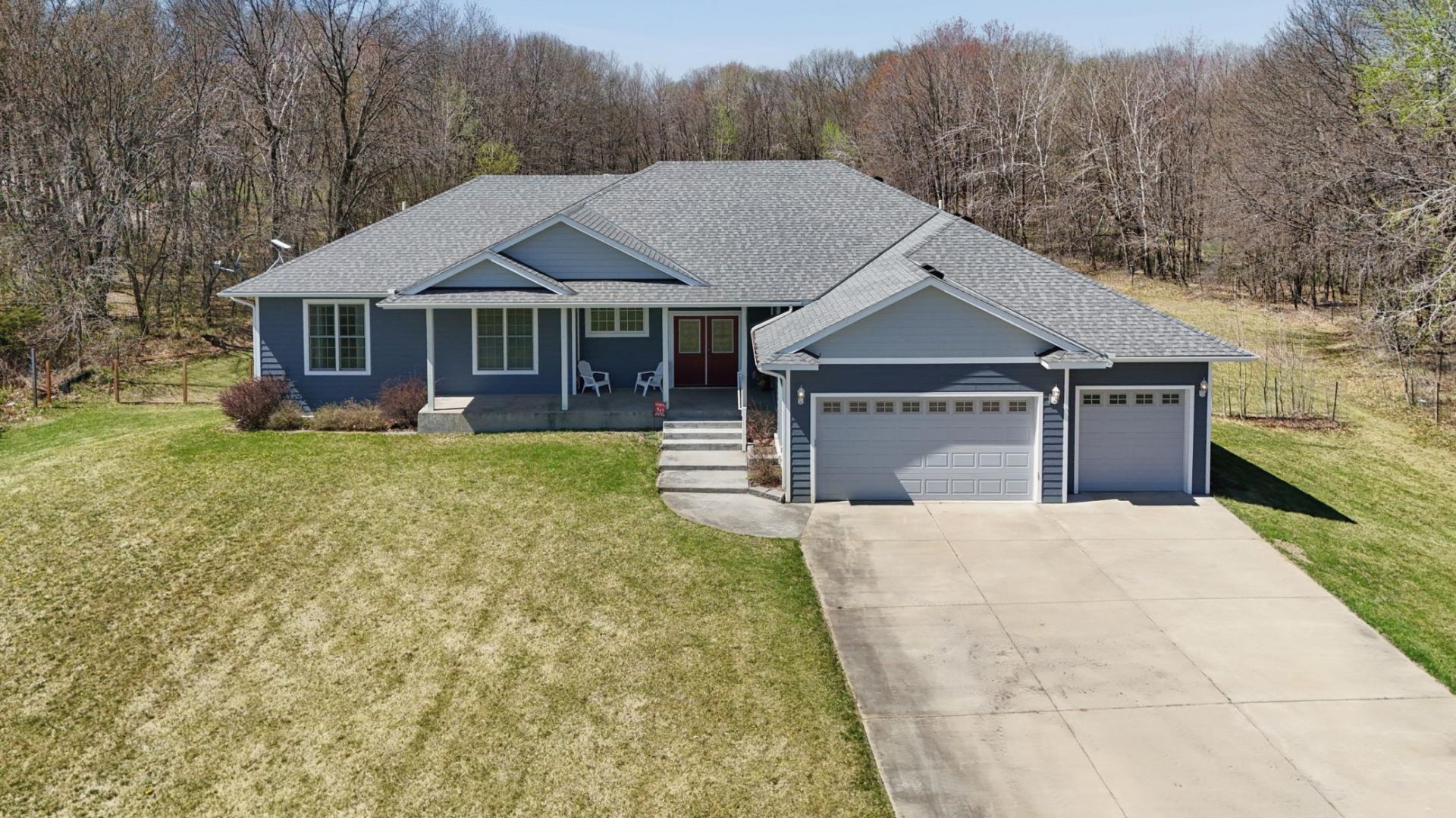 Look no further - this is the dream home you have been waiting for. Built in 2017, this stunning 4-bedroom, 4-bathroom estate sits on 9.7 picturesque acres, offering a perfect blend of open green space and huntable wooded land.The exterior is just as impressive, featuring 30-ft and 60-ft custom stamped concrete patios, maintenance-free decking, and durable LP SmartSide siding for long-lasting quality and curb appeal.Step inside to an inviting open-concept layout with 10-foot ceilings, three bedrooms on the main level, spacious walk-in closets, and convenient main-floor laundry. The recently finished lower level completed just two years ago...read more