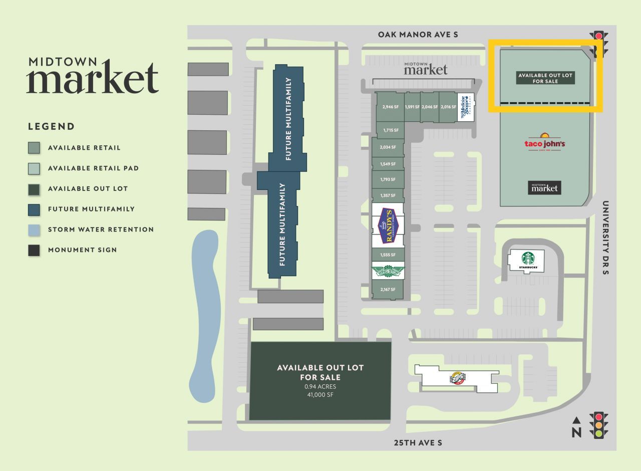 Don't miss your opportunity to position your business in a thriving location with unbeatable exposure. Ideal for retail, restaurant or service-based businesses. The parcel size is .38 acres and is in a prime location off University Drive and I-94 in Fargo, ND near Midtown Market. The neighbors for this parcel include Starbucks, Randy's Diner, Zips Car Wash, Wingstop, Taco Johns & more.