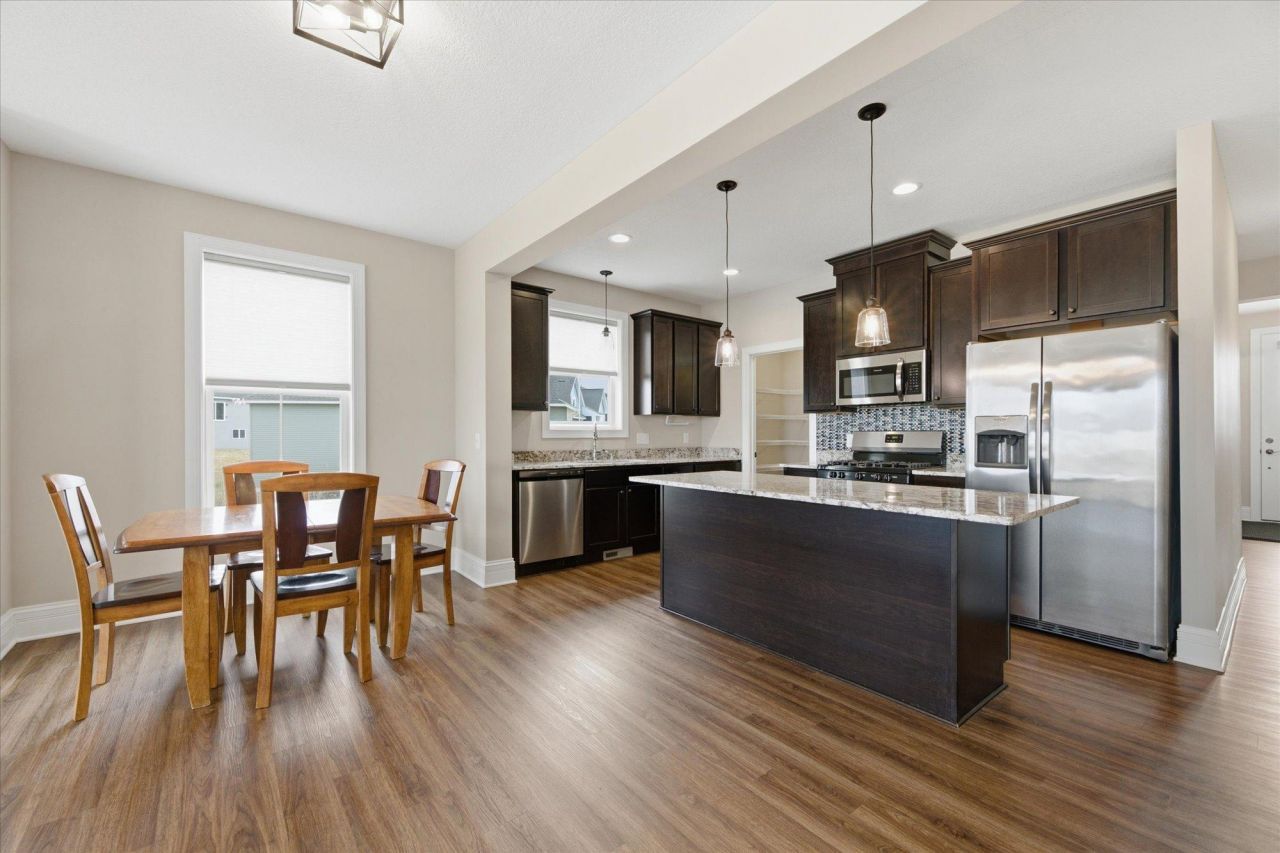 Welcome to 2629 Buffalo Ridge. This 2021 built home boasts a walkout basement to a paver patio, 2 beds on the main floor with the owners suite offering a double vanity, walk-in shower and a large walk-in-closet. On the main floor you'll also find granite counters, center island, large laundry room, mudroom with built in bench and double closet, gas fireplace with built ins, stainless steel appliances, kitchen pantry, open floor plan with lots of natural light from the extra tall windows which overlook a nature area surrounded by walking paths right from your yard! There is a 2 car garage with one stall extra deep (see pics), poured concrete...read more