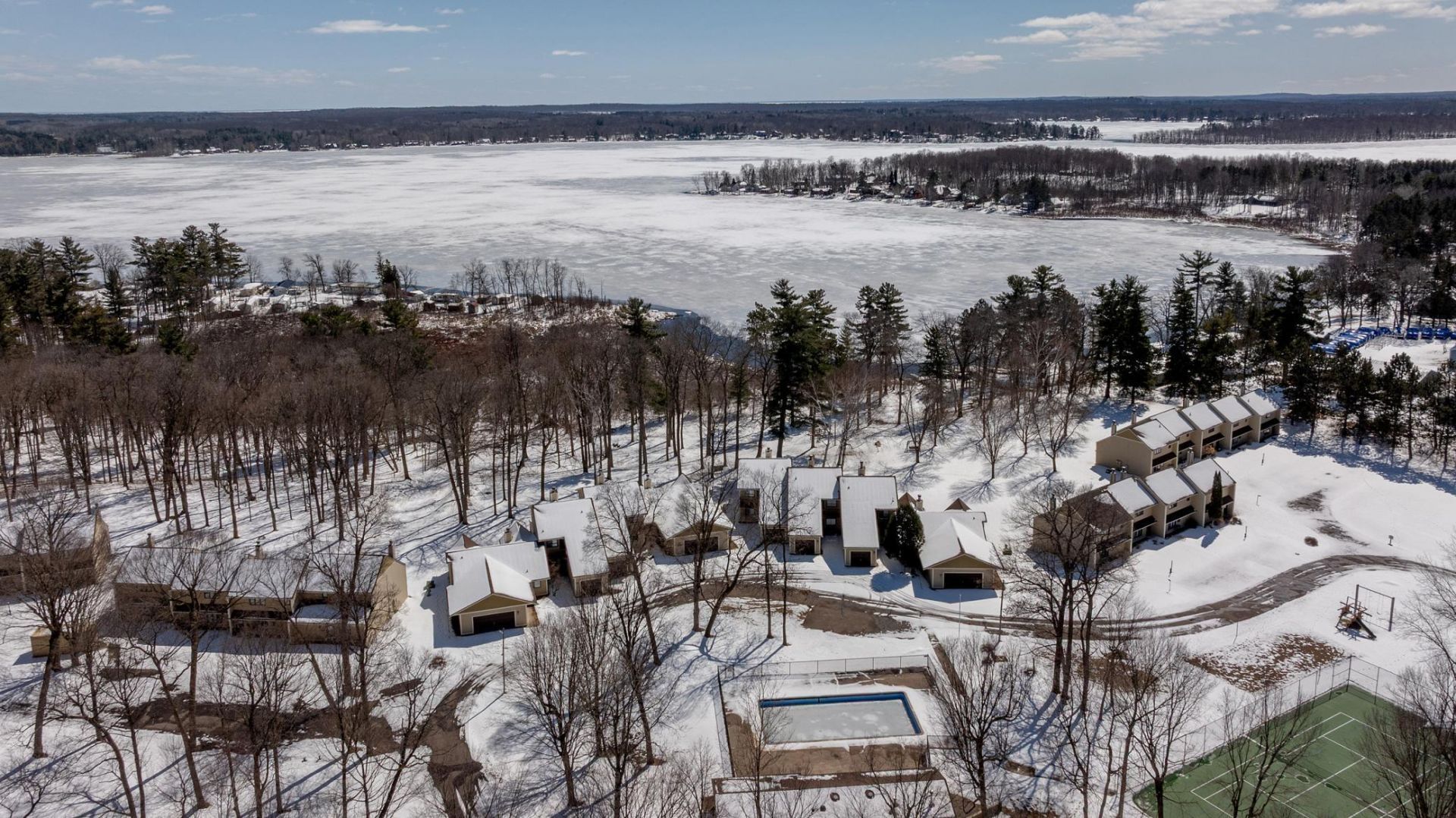 Welcome home to this beautifully maintained 2-bedroom, 2-bath townhome on highly sought after Bay Lake that perfectly balances comfort, style, nature, and functionality. The main floor offers a updated kitchen, fantastic lake view four-season porch, full bath, dining area, plus a gorgeous stone wood burning fireplace for those crisp nights. The upper level encompasses the primary suite with a full bath, laundry, walk-in closet, and a new maintenance free deck overlooking Bay Lake. The amenities are a plus with a dock slip, in-ground heated pool, tennis/pickelball court, indoor hot tub, sauna, firepits, and a playground. The townhome comes...read more