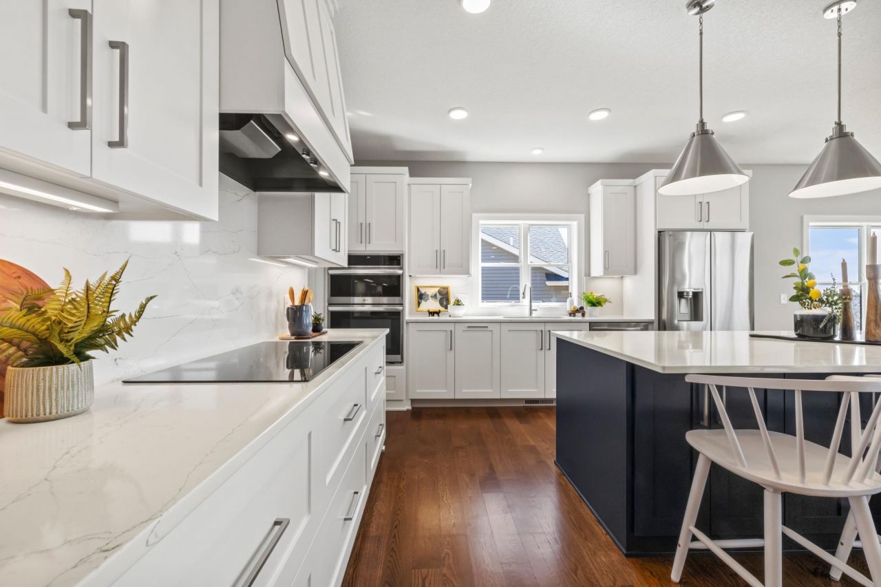 This Johnson Reiland Custom Home in Pete's Hill blends luxury with low-maintenance living at one of Scott County's highest elevations. Enjoy sweeping views from the vaulted great room, four-season porch. and walkout basement with 10-foot poured walls. Designed for comfort and accessibility, it features a zero-entry layout, 8-foot interior doors, and main-level living. Highlights include a custom fireplace surround, quartz kitchen countertops, and curated cabinetry. With 4 bedrooms, 3 baths, and an extra-deep (30 ft) garage, there's room for guests, hobbies, and storage. Located just 2 miles from I-35W and within the Lakeville School District,...read more
