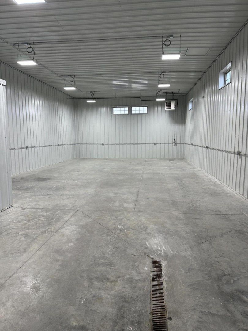 Unit amenities consist of an office, restroom, utility sink, floor drain, LED lights, 14' garage door and 20' sidewalls. No additional parking available.
