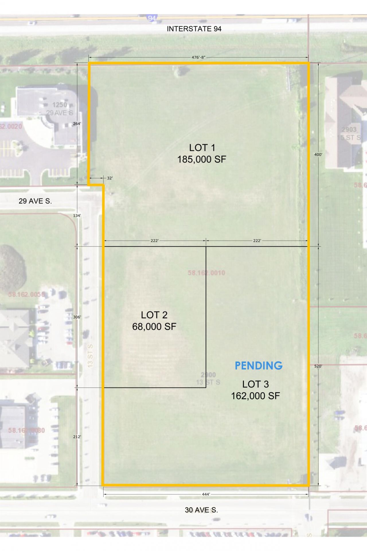 Development land for sale with Interstate frontage in Moorhead! High visibility along I-94 as well as great access off 30th Ave S. Entitlements in process to rezone the property for shop condos, multi-family, office or retail. Lot sizes and uses are flexible. Contact agent for more information.