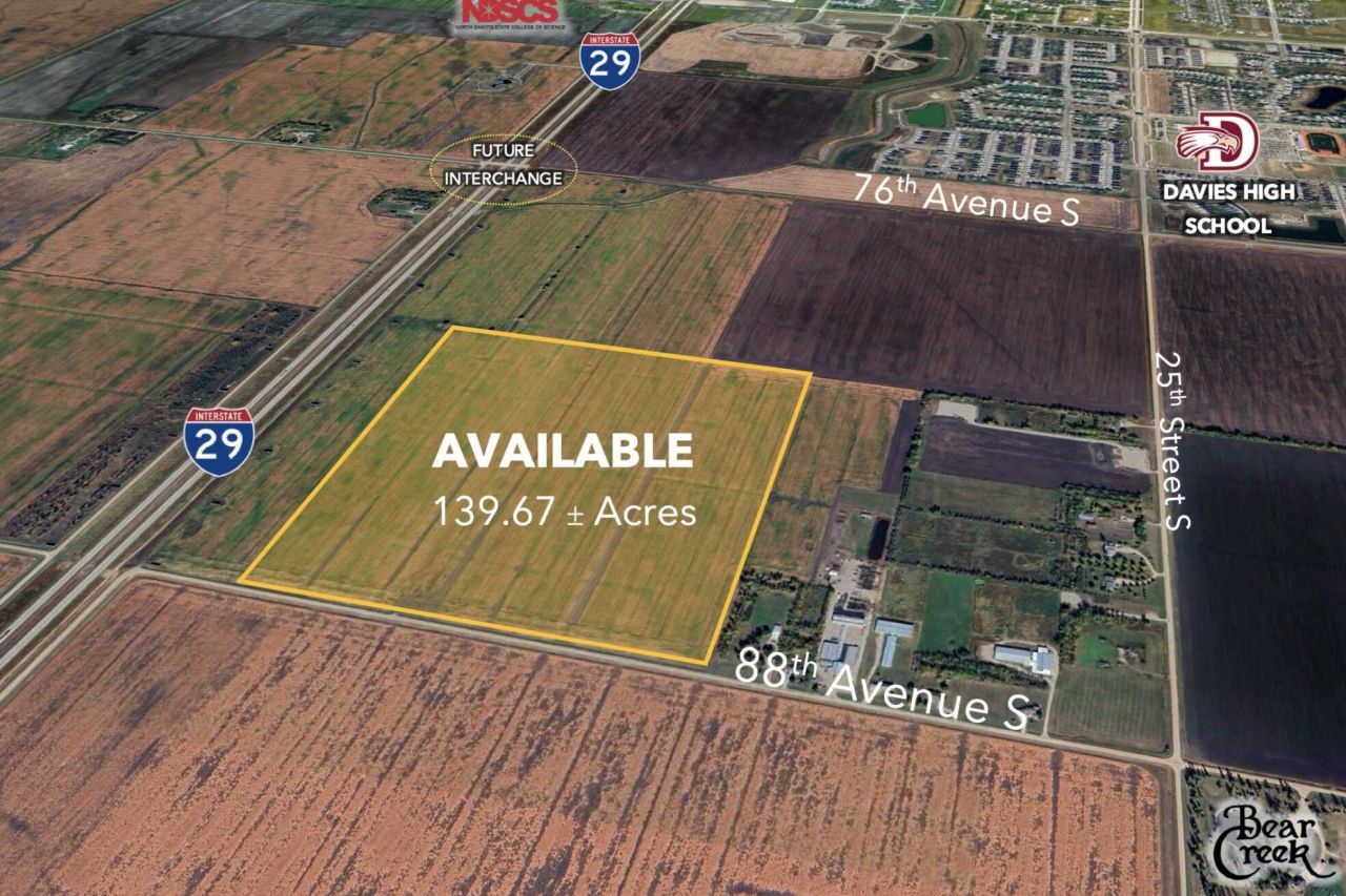 Excellent opportunity to acquire development land in South Fargo's extraterritorial zone. This site will benefit from the protection of FM Diversion, currently under construction. Accessible from I-29 by I-29/Horace interchange at 100th Avenue South; with a future overpass planned at 88th Avenue South and interchange at 76th Avenue South.
