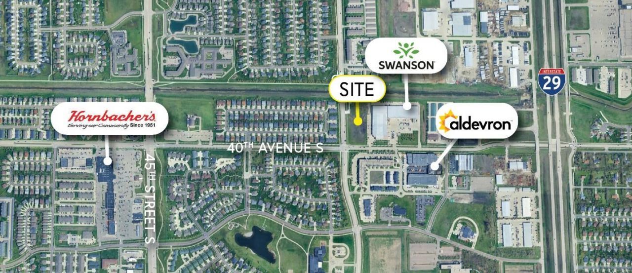 Prime development land positioned at the intersection of 42nd Street South and 40th Avenue South with traffic signal, this exceptional 3.53 acre parcel offers high visibility and excellent access in one of south Fargo's fastest-growing commercial and residential corridors. Ideally situated near residential neighborhoods, major arterial streets, all with high traffic and prominent exposure.
