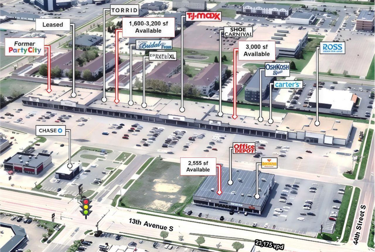 Former Party City - 12,021 sf;Additional spaces - 1,600-3,200 sf;Building and pylon signage available. Excellent visibility from 13th Avenue S.