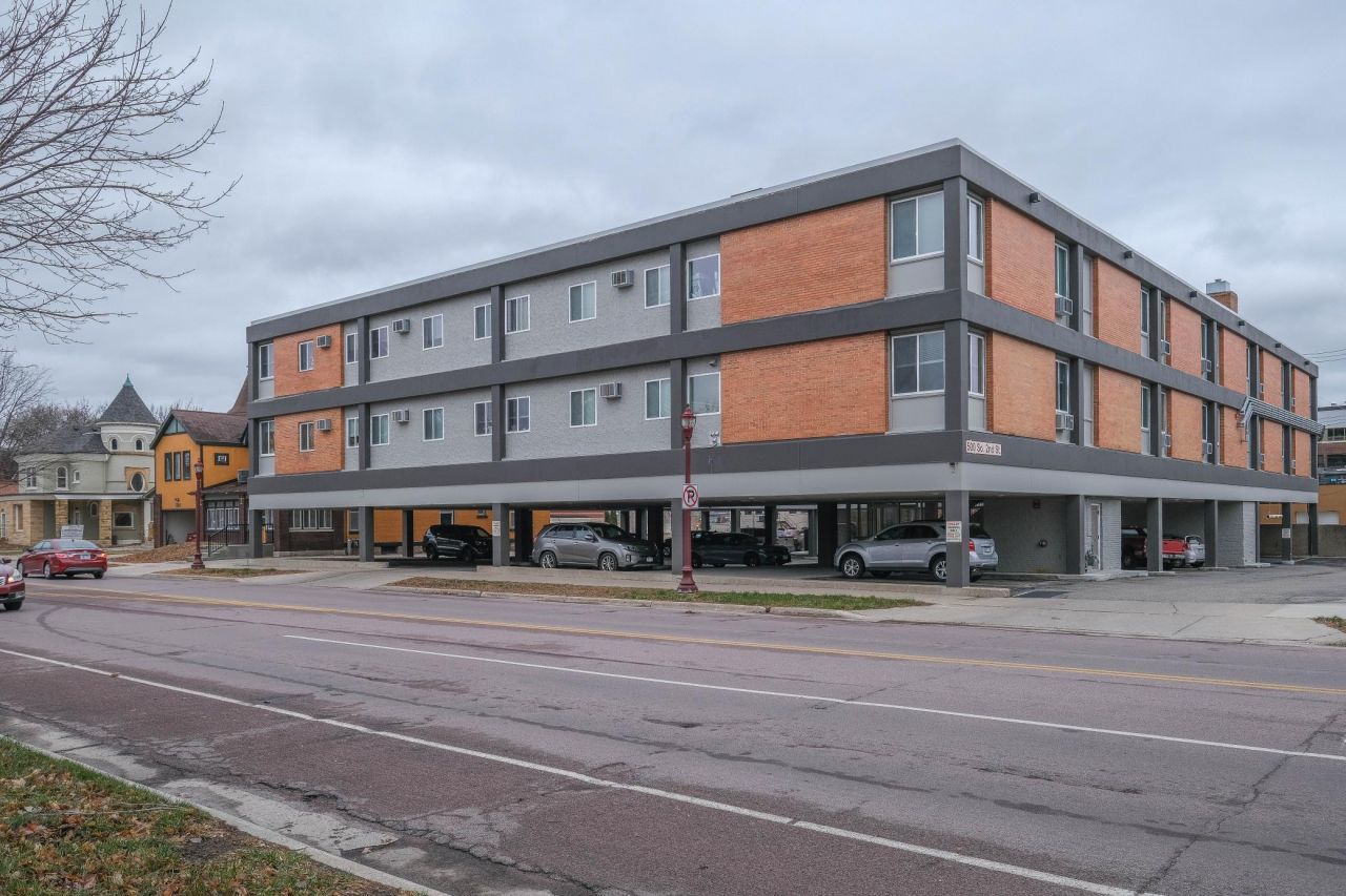 Cherry Square is an apartment complex on the corner of 2nd St. and Cherry St. formerly known as the Inn Towne Motel in the downtown Mankato bar district. It was built in 1950. This 38 unit- 3 story complex is built of pre-stressed concrete and brick. Parking is on the main level under the square shaped building which is elevated on columns. The apartments, consisting of 8 two bedroom units and 30 one bedroom units, went through a total remodel in 2022 and early 2023. The occupancy rate is currently at 100%. There is ample parking on the property for all residents.Building #2 (121 E Cherry St) is a commercial building consisting of 12,663SF...read more