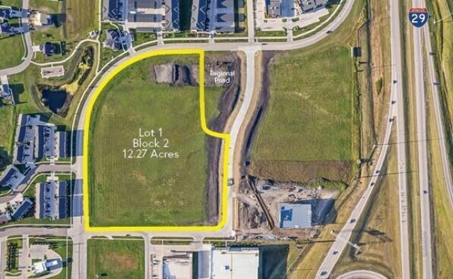 Lot that can be subdivided is available for purchase along Interstate 29 at the corner of 38th Street South and 51st Avenue South in Fargo. Nearby businesses include: Gate City Bank, Aldi, Happy Harry's Bottle Shops, Walmart, Starbucks, Kingpinz Social, Suite Shots, Cash Wise, Plaza Azteca, and McDonalds. Alexander Drive South is expected to be constructed this summer.