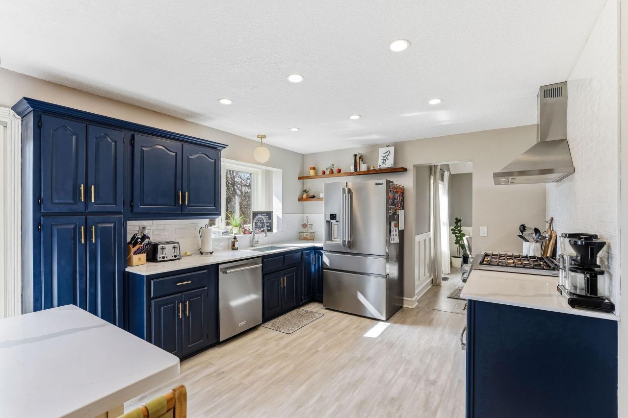 Spacious two-story home with multiple living areas, updated finishes, and a nicely finished lower level. The main floor features newer LVP flooring that runs throughout the main level, along with white trim and taller baseboards for a clean, updated look. The vaulted Living Room features white paneled wainscoting and a half-circle window overlooking the front yard. The space is currently being used as a large Dining Room but could easily function as either a Living Room, Dining Room, or a combination of both. The Kitchen has been refreshed with quartz countertops, white subway tile backsplash, stainless steel appliances, recessed lighting,...read more