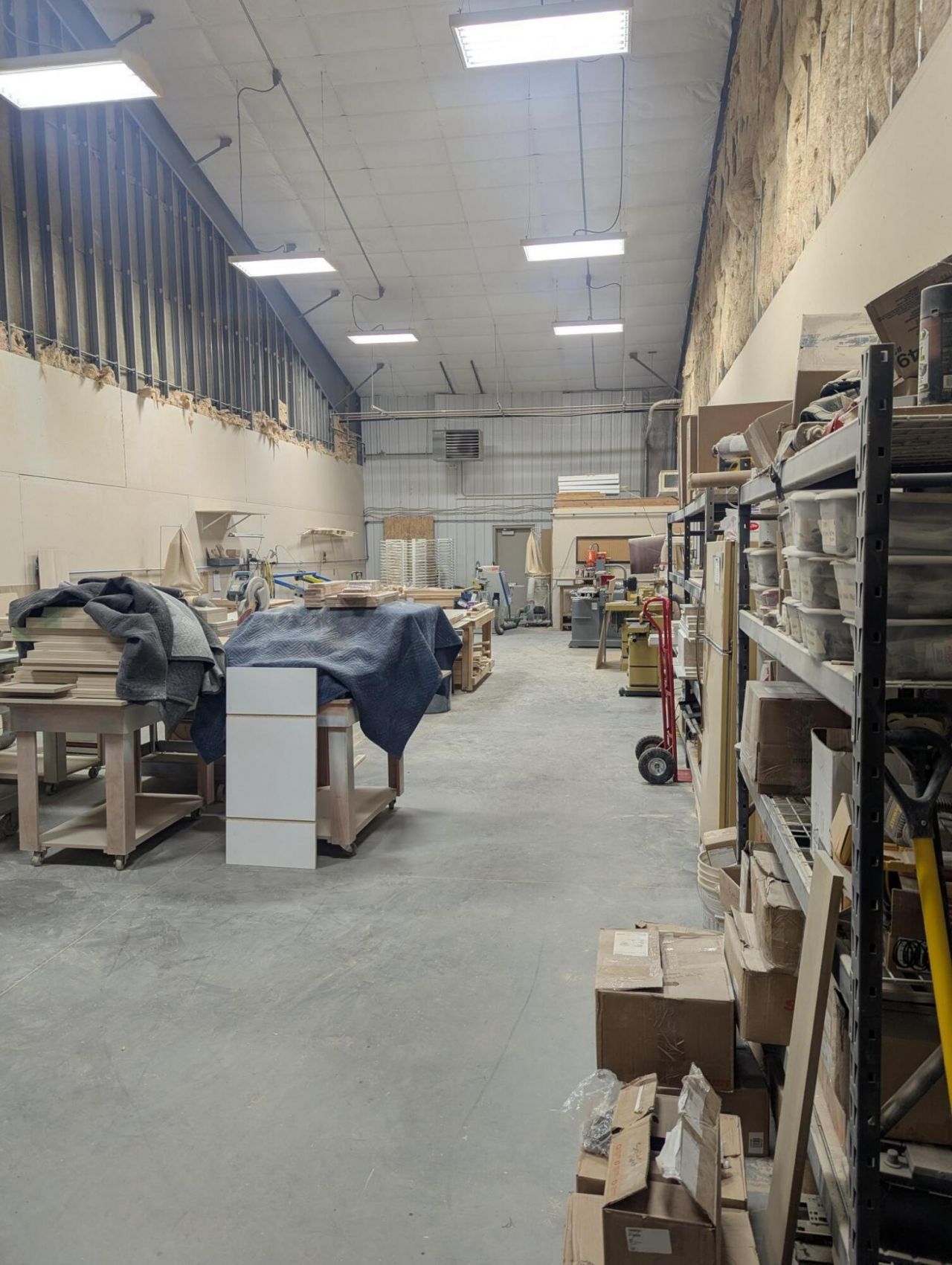 This property is currently operating as a cabinet shop. It consists of a 2,000 sq. ft. bay with a pass-through to a 6,000 sq. ft. space with storage, production, paint and stain booth, showroom and front office. Both bays have a 14' overhead door. It can remain as an 8,000 sq. ft. shop or be converted back to a 2,000 sq. ft. shop and a 6,000 sq. ft. shop.
