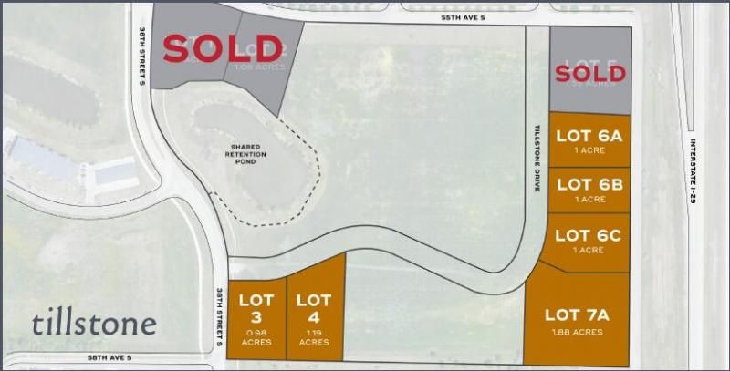 Commercial lots for sale or build-to-suit opportunities at south Fargo's newest development, Tillstone. Commercial lots at Tillstone offer a well-connected location just south of Walmart with visibility from I-29 and 52nd Ave South. Close proximity to surrounding residential neighborhoods, commercial businesses, and retailers complement the site's visibility with strong consumer traffic.
