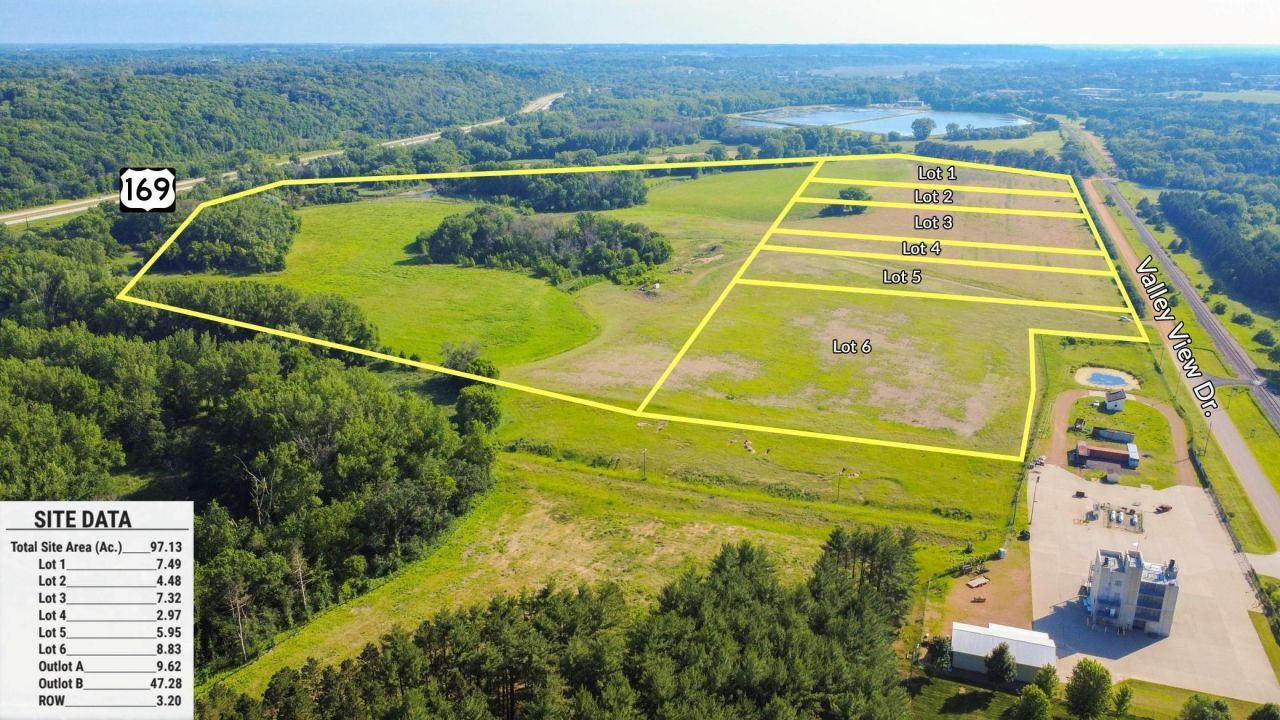New Industrial Development off Hwy 169 South of Shakopee. Lots sizes ranging from 2.98 acres to 17.acres and lot sizes may be negotiable. Scott County Zoning is RBR Rural Business Reserve. Outside Storage is allowed and open to all builders. Valley View Drive is a 10-Ton Road and will be paved. See supplement for Zoning, site plan and proposed lot sizes.There is a shared well for the development. The holding ponds are in and will be maintained by the township.EZ access to Hwy. 169 with the new Bluff Drive Overpass and New Jordan Interchange. This is a great location!
