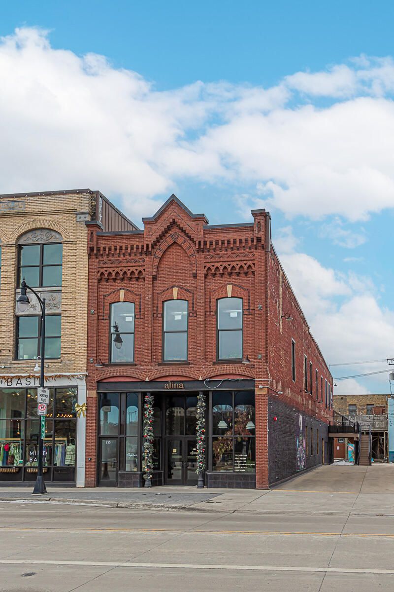 Beautifully renovated 1882 Victorian Gothic downtown main level space blending historic charm with modern flexibility. Features 14' ceilings with decorative tiles, reclaimed maple floors, and exposed brick.Includes two storefronts, off-street parking, an exterior deck, and assembly use potential. Great investment (Bell Bank/Island Park Pool) and long-term businesses thriving nearby!