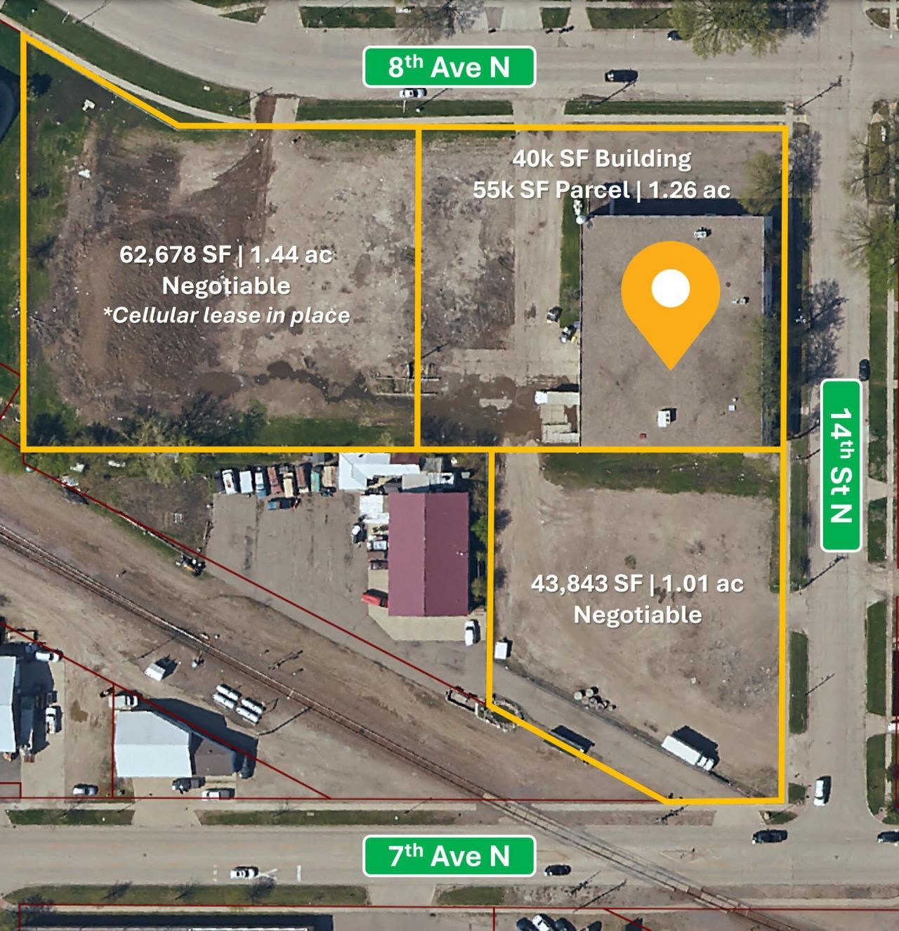 Great concrete building w/ 2 docks near Downtown & NDSU. 55k SF lot with potential for +106k SF excess land! Great location off 7th Ave N near University Drive. Previously used for document storage, could be used for warehouse or converted to office or multi-family. 1st floor has open warehouse space, offices, conference/break area. 2nd has warehouse space & offices. NO specials remaining!