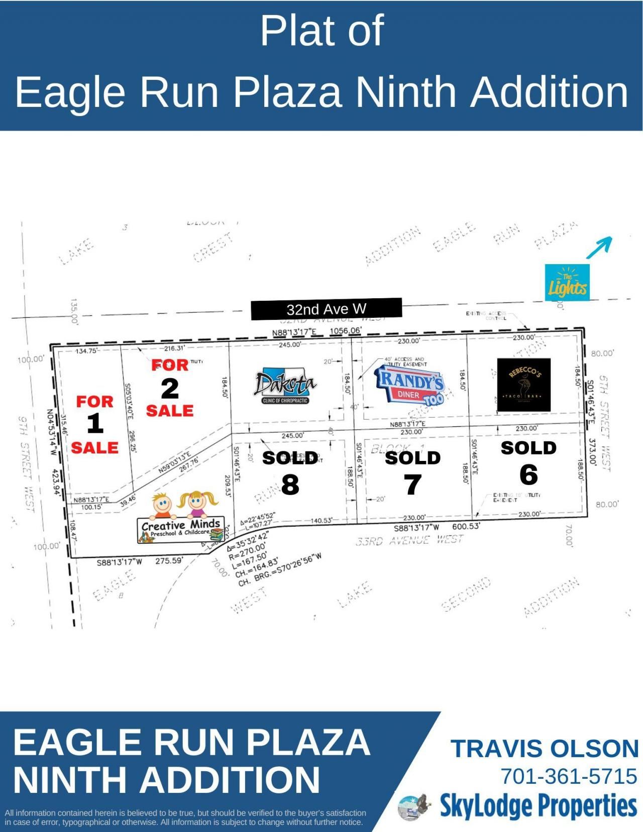 Eagle Run lots for Sale. Only 2 lots remaining!! Approximately an acre each. Close to The Standard, Rebecco's, Randys Diner Too, and Dakota Chiropractic Clinic.