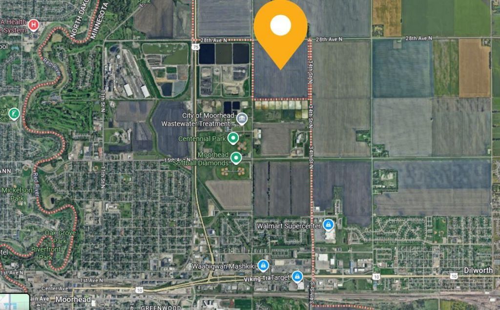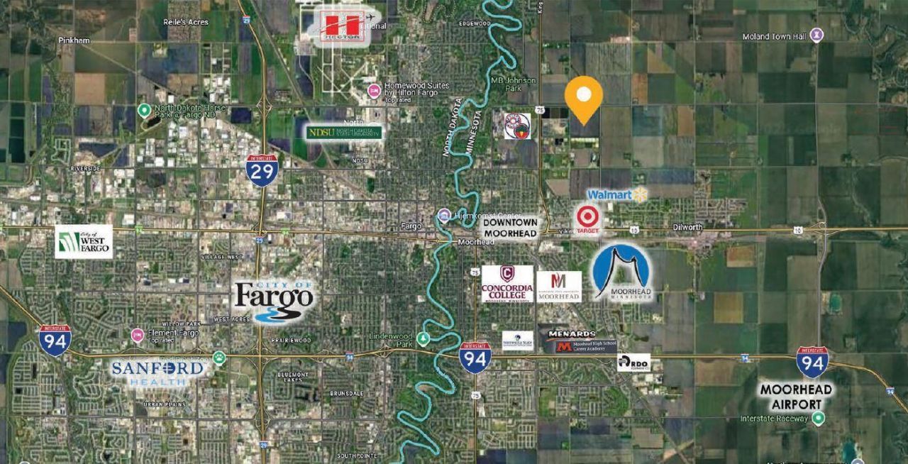 Unique opportunity to acquire a large tract of raw land with prime light/heavy industrial potential. Adjacent to Moorhead city limits, south of 28th Ave N & west of 34th St N, it's outside the flood plain with city utilities <1 mile away. Farm lease income until development. With paved roads east/north & a concrete road west, it offers rapid access for end-users or developers.